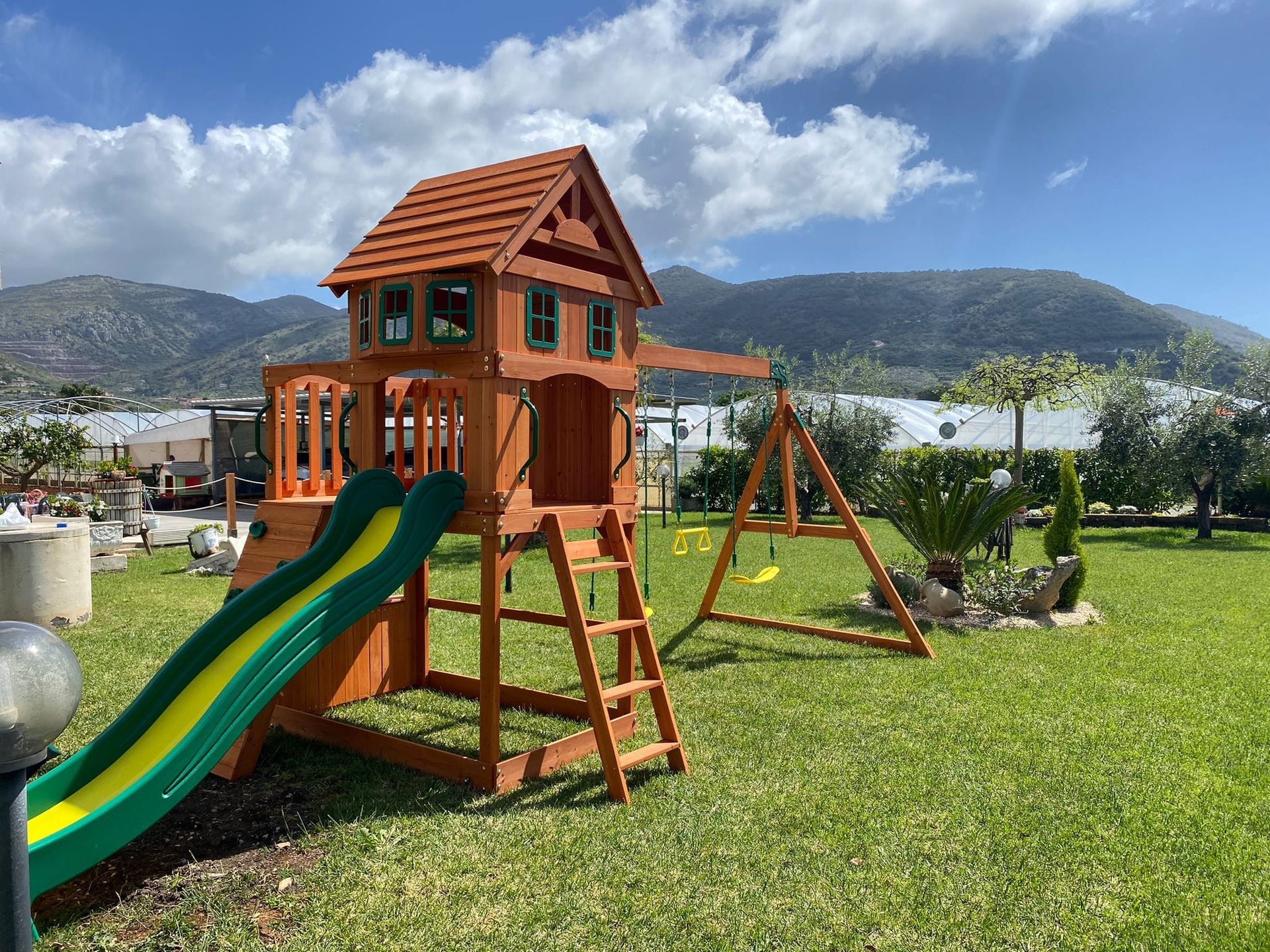 Altalene, scivoli, casette giocattolo, tunnel, dondoli, tappeti elastici, castelli gonfiabili o strutture in legno ma anche i grandi classici come secchiello, paletta e tutte le formine e gli attrezzi per giocare con terra e sabbia.
